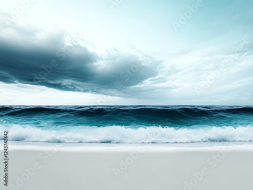 Fototapeta premium a stormy beach with dramatic clouds, dark waves, intense atmosphere, moody aesthetic, isolated on white background