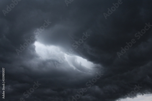 © Алла Мосурова, Obraz premium a stormy gray sky with clouds begins to rain and a hurricane