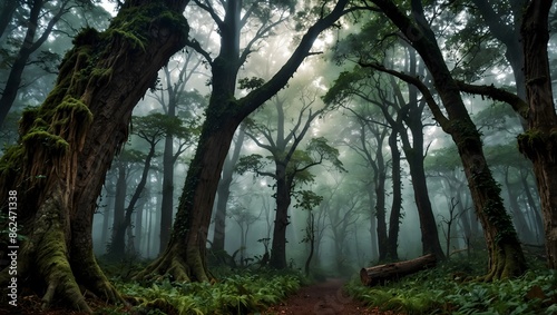 Fototapeta premium A story about a forbidden enchanted forest where time flows differently, aging its visitors overnight ai_generated