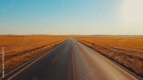 © Aisha, Naklejka premium A straight, endless asphalt road with a clean, freshly laid surface