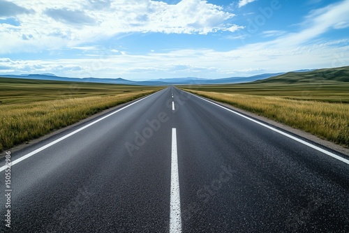 © Сергей Косилко, Fototapeta premium a straight paved road across the steppe