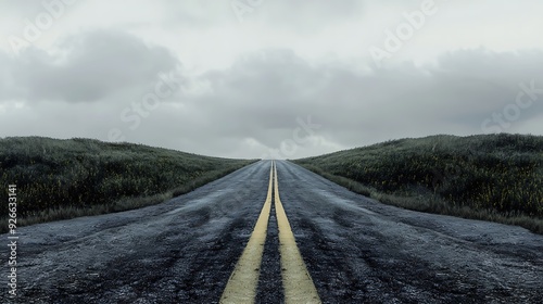 © Handz, Fototapeta premium A Straight Road Leading into a Cloudy Sky