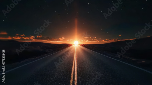 Fototapeta premium A straight road stretching toward a glowing horizon, representing journeys...