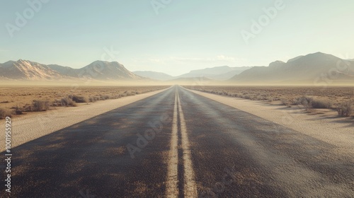 © S, Fototapeta premium A straight road through a flat, empty desert