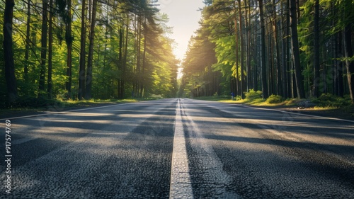 © Vader Stocker, Obraz premium A Straight Road Through a Sunlit Forest