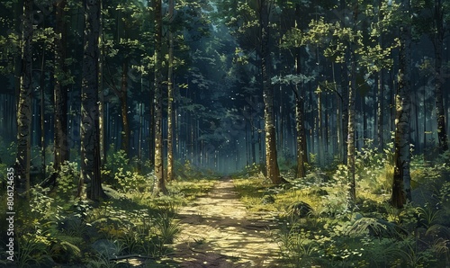 © Svitlana, Fototapeta premium A straight trail through a young forest