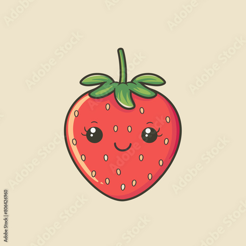 © viklyaha, Obraz premium A strawberry with a white flower on top. The strawberry is red and has many small dots