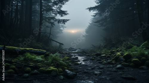 © Rehan, Obraz premium A Stream Flowing Through a Dense Forest