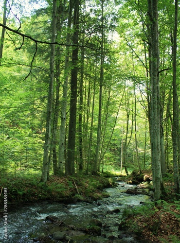 © sebi_2569, Fototapeta premium a stream in the green forest