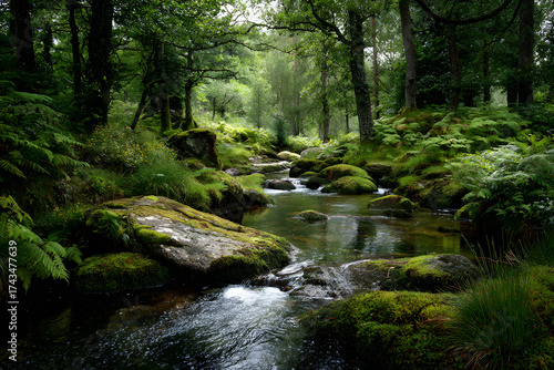 © Le, Obraz premium a stream running through a lush green forest
