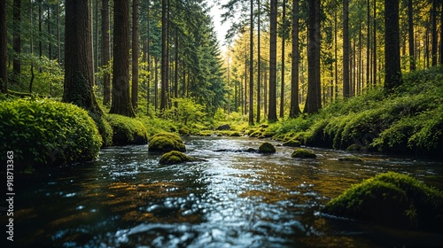 © KWY, Obraz premium a stream running through a lush green forest