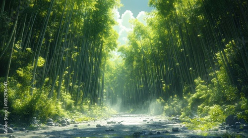 © Muamanah, Obraz premium A Stream Winding Through a Lush Bamboo Forest