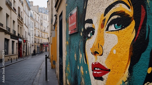 Obraz premium A street art mural of a woman's face in Paris, France.