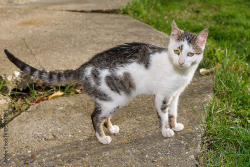 © nedomacki, Naklejka premium A street cat is standing on the asphalt