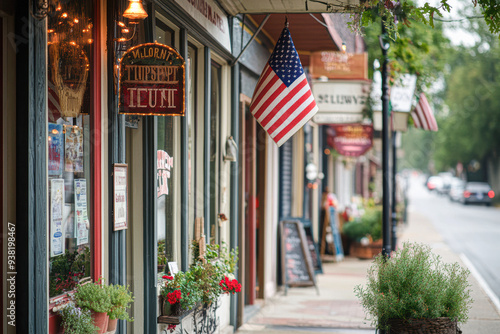 © Kowit, Naklejka premium A street with a few shops and a sign that says "Luxury" on it