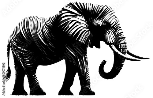 Fototapeta premium A striking abstract elephant sculpture rendered in bold black and white...