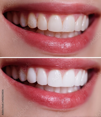© Alexei, Fototapeta premium A striking before and after photo showcasing a womans beautiful teeth