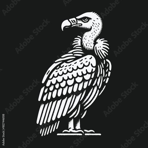 Fototapeta premium A striking black and white graphic illustration of a vulture standing in...