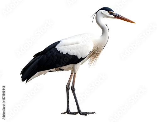 Obraz premium A striking black and white heron stands gracefully, showcasing its elegant...