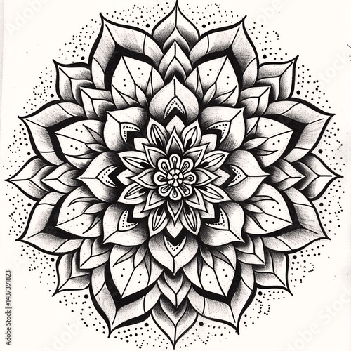 Fototapeta premium A striking black and white mandala illustration, composed of intricate...