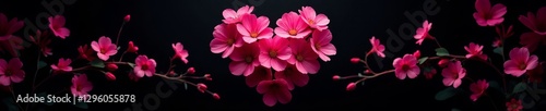 © Krit, Fototapeta premium A striking black background accentuates a stunning heart-shaped arrangement of vibrant pink flowers, heart, flowers