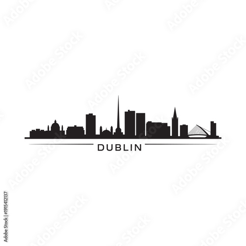 Fototapeta premium A striking black silhouette of the dublin city skyline with its name