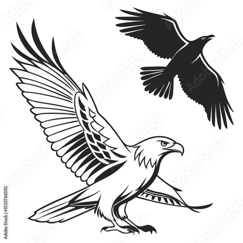 Fototapeta premium A striking black silhouette vector illustration of a flying eagle with...