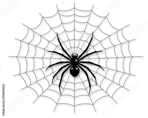 Fototapeta premium A striking black spider resting on its intricately woven web, showcasing...