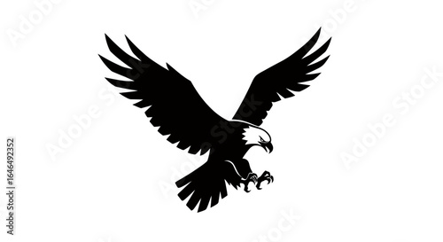 © Dieke, Naklejka premium A striking black vector illustration of a majestic eagle soaring with outstretched wings, embodying strength, freedom, and precision.