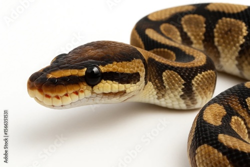 © Albert, Fototapeta premium A striking close-up of a python's head, showcasing its vivid patterned scales and captivating gaze