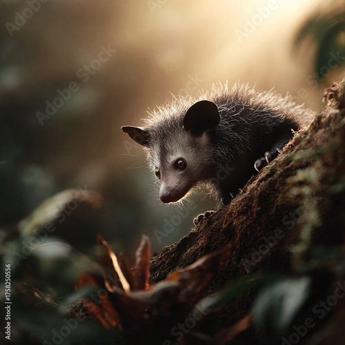 © SolaruS, Naklejka premium A striking closeup of a unique primate perched on a mossy branch. Evokes themes of curiosity, wildlife, and exotic nature. Great for conservation, education, and adventure.