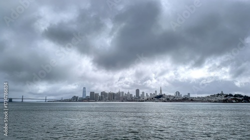 © Imron, Fototapeta premium a striking contrast between two different scenes. on the left side, there's an overcast sky filled with heavy clouds, creating a dramatic, moody atmosphere