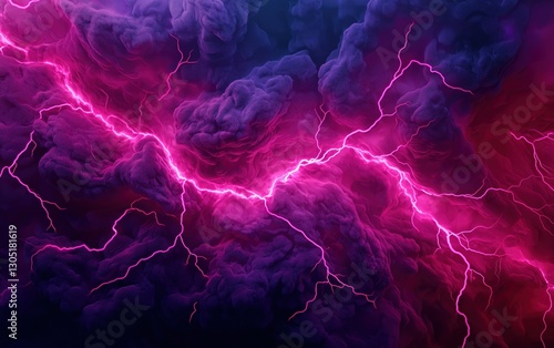 © Ai Stock Lab, Obraz premium A striking display of purple lightning illuminating dark storm clouds.