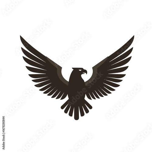 © Rahmanart, Naklejka premium A striking flat 2D vector illustration features a powerful eagle emblem with majestic double wings, presented clearly and isolated on a clean white background.