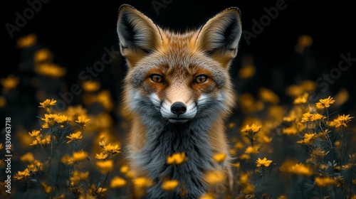 Naklejka premium A striking fox stands amidst vibrant wildflowers, capturing the essence of...