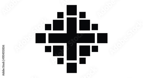 Fototapeta premium A striking geometric composition of black squares against a white background forming a cross like shape a bold silhouette