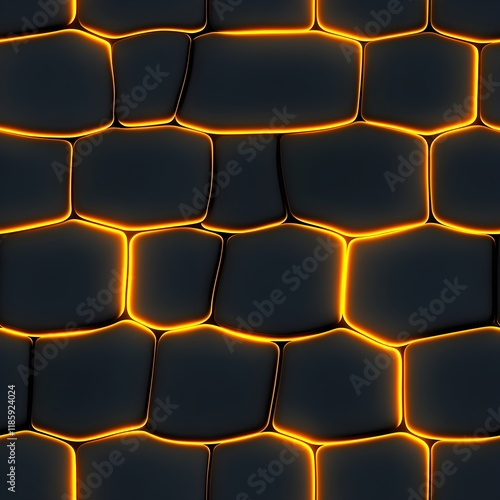 © Raksnalee, Obraz premium A striking, geometric pattern of dark gray stones, seemingly interlocking, with glowing orange outlines.