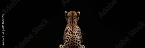 Naklejka premium A striking image of a leopard viewed from behind, showcasing its unique spotted fur against a dark background. Ideal for wildlife conservation themes or animal-related content.