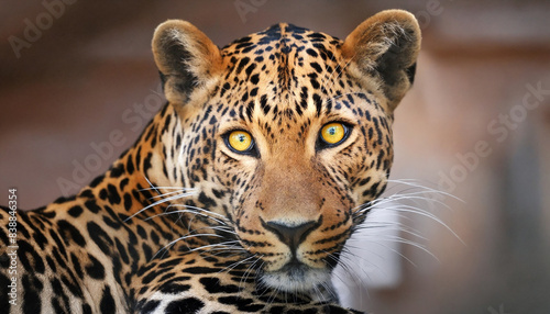 Fototapeta premium A striking portrait of a leopard with a piercing yellow eye highlighting its...