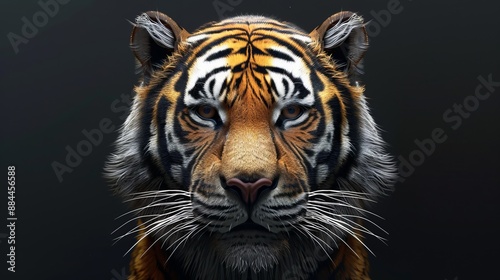Naklejka premium A striking portrait of a tiger looking intensely ahead, showcasing its...
