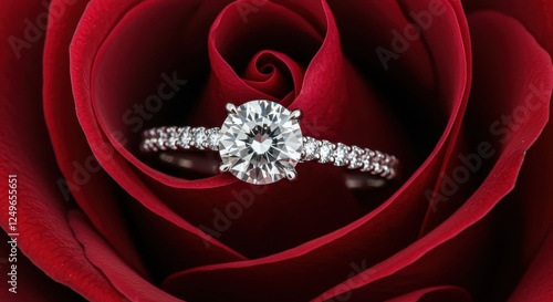 © PP Creative, Fototapeta premium A striking round cut diamond engagement ring with pave set diamonds on a platinum band