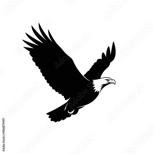 © Rafsan, Obraz premium A striking silhouette of a majestic bald eagle in powerful flight