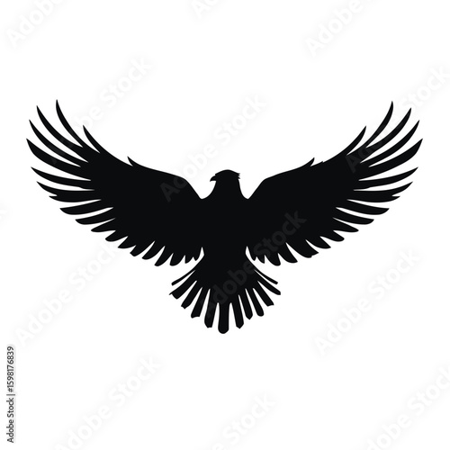 Naklejka premium A striking silhouette of an eagle in flight, its powerful wings spread wide,...