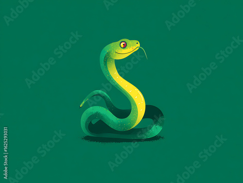 Naklejka premium A striking stylized illustration of a vibrant green snake, coiling gracefully on a shaded surface. Evoking curiosity and a sense of primal elegance, with bold colors and clean lines.