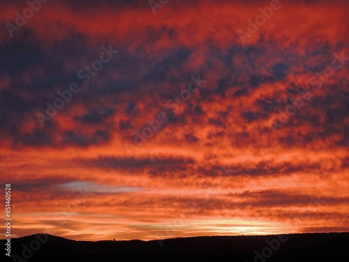 Fototapeta premium a striking sunset over the savannah at maasai mara national game reserve in...
