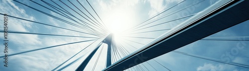 © isti, Obraz premium A striking view of a modern suspension bridge against a bright sky.