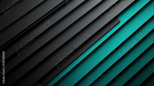 © Sascha, Obraz premium A striking visual featuring a black background illuminated by vertical teal gradient lines. Generative AI