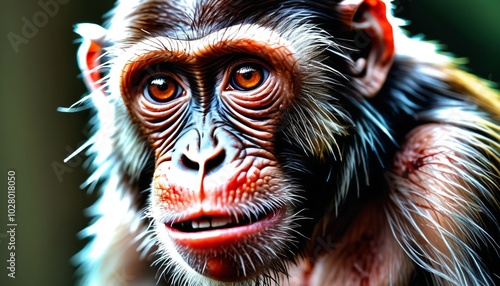 Naklejka premium A striking visual portrays a monkey with monkeypox, focusing on the disease's...