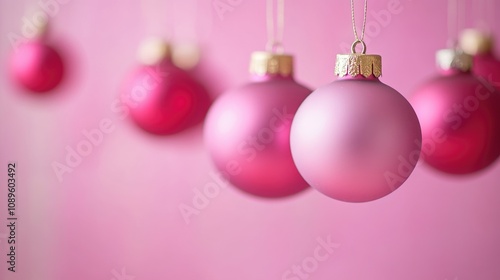 © Alla, Fototapeta premium A string of pink ornaments suspended from above, perfect for festive decoration or as an illustration in holiday-themed articles