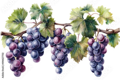 © fanjianhua, Fototapeta premium A string of purple grape illustrations on a white background